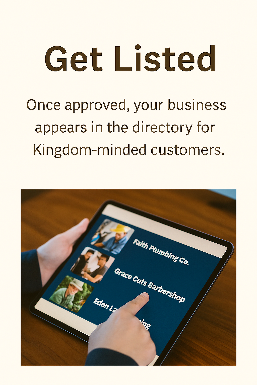 Once approved, your business appears in the directory for Kingdom-minded customers.